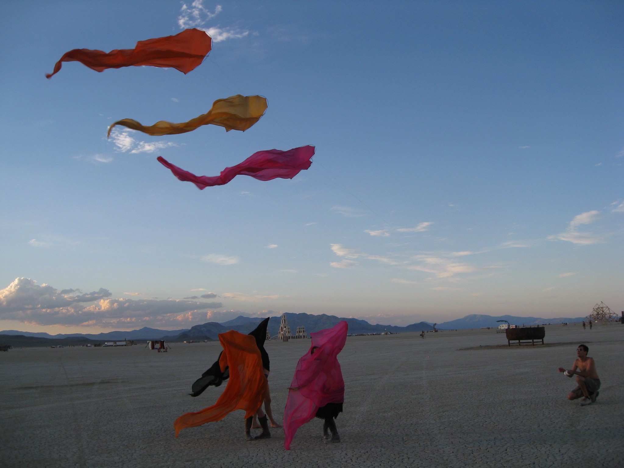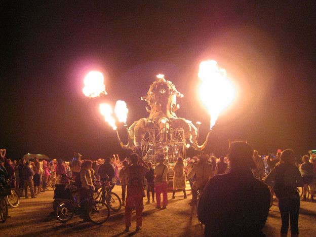 So Burning Man this year was characterized by tough days and fun nights. Before I write my compulsory chronological narrative, let me start with a few overall observations. It was tough this year. It was my third time there, but I felt less well prepared this time than last time. Maybe over the course of my 2-year hiatus I forgot how incredibly unsuited I am to long days of exposure to fierce desert sun. There were times over the first few days when I thought I wasn't going to make it. This did eventually improve, though. I ended up having some great experiences, including my best musical performance to date.