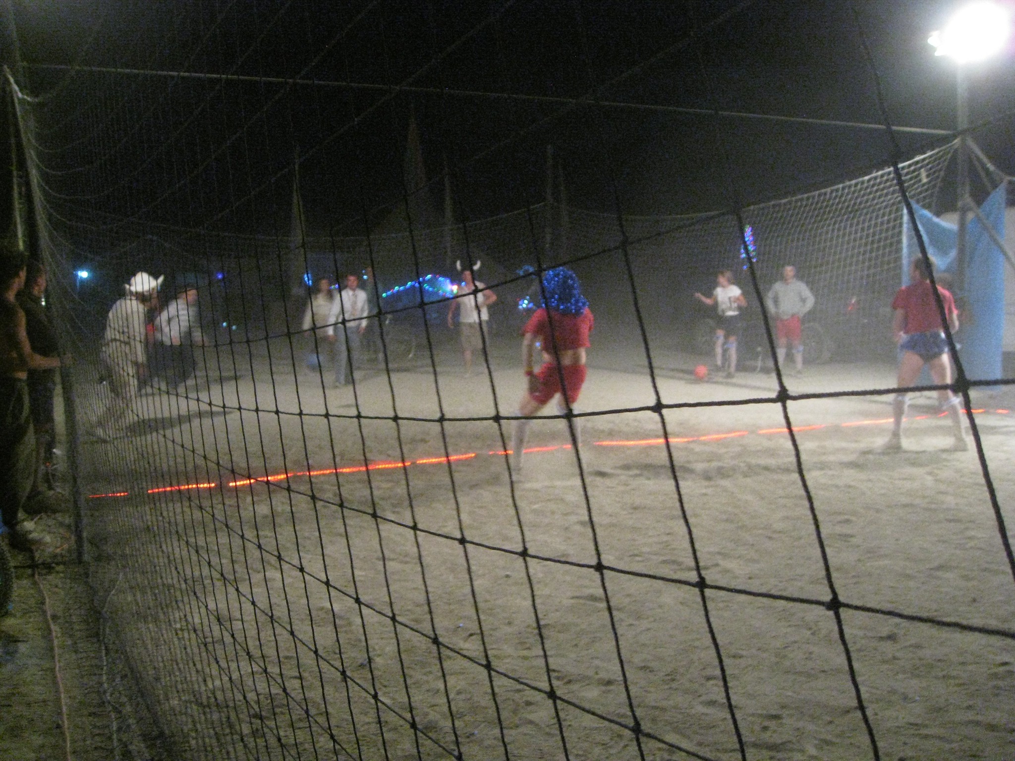 Wednesday afternoon I attempted to visit some friends on the playa. I managed to locate Pat McConaghy's camp and find his RV, but he wasn't there. I found Camp Beaverton but no familiar faces, and I couldn't find Freedom Community at all. I checked out Center Camp briefly. Dinner was Mac and Cheese and I was on cleanup duty. In the evening I hung out a bit in the dome and went out searching for live music. Instead, I found Camp Dodgeball Addiction, where there were running pickup dodgeball games. I played a while and had an absolute blast. It was really fun. Easily my favorite camp this year.