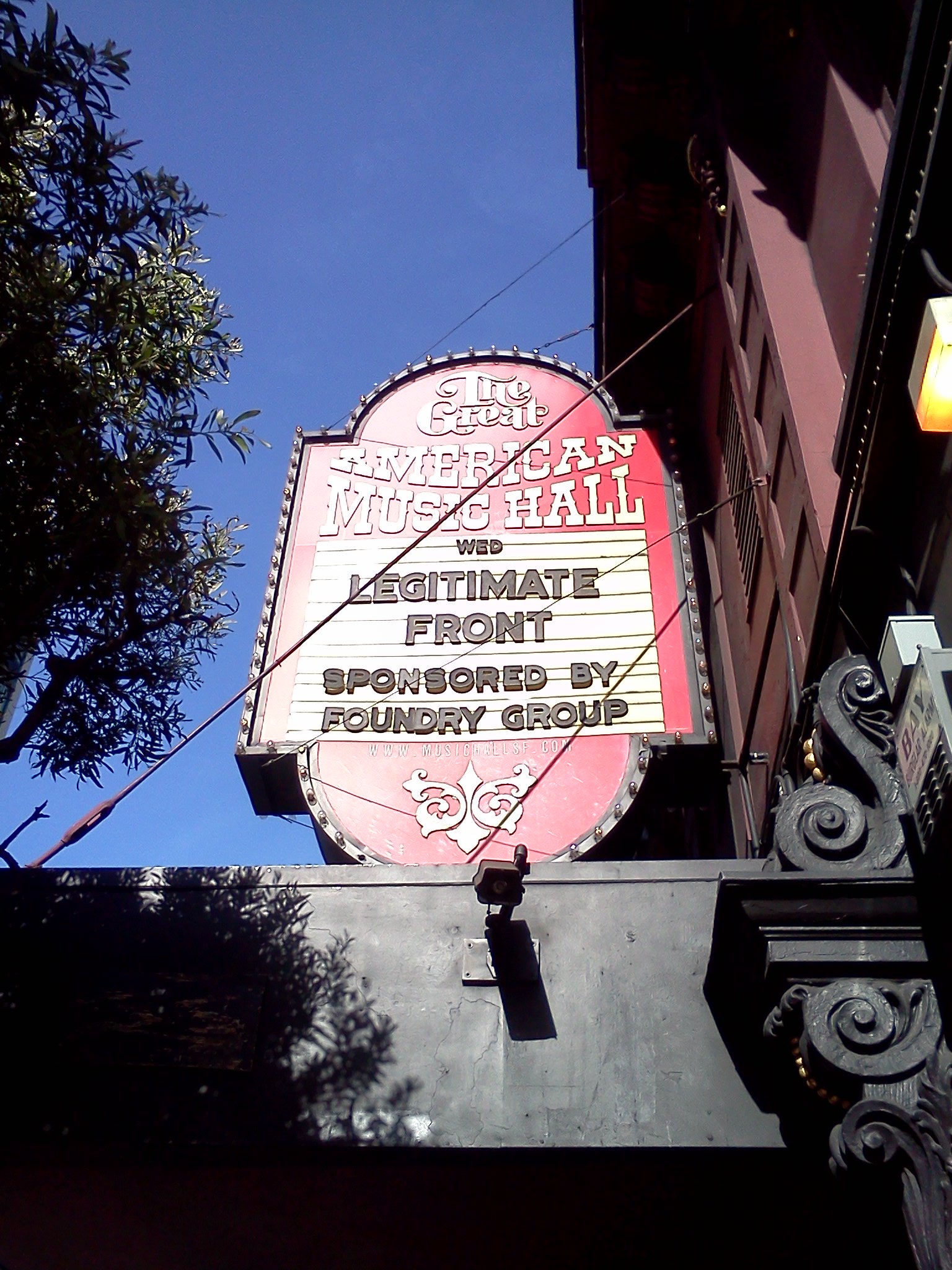 Tuesday morning I worked from my airbnb room since the owners were out and then headed into the haight to work a bit from Coffee to the People before taking muni to The Great American Music Hall to sound check for the Legitimate Front gig.